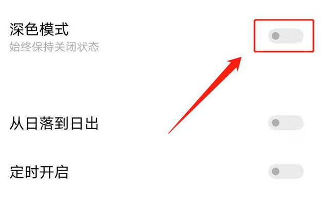 进入“深色模式”以后,将深色模式的“开关”关闭掉。如下图: